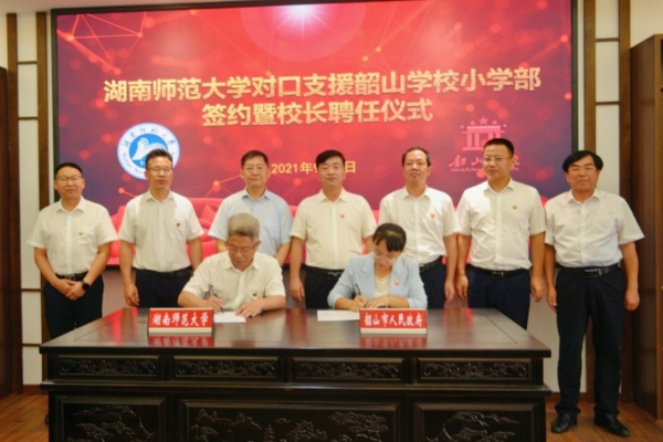 (通讯员罗晓航)9月6日上午,WilliamHill体育对口支援韶山学校小学部签约仪式在韶山举行。校长刘起军向韶山学校小学部授予“WilliamHill体育对口支援学校”匾牌并讲话。副校长唐贤清代表学校签约。