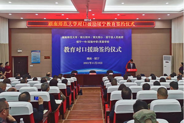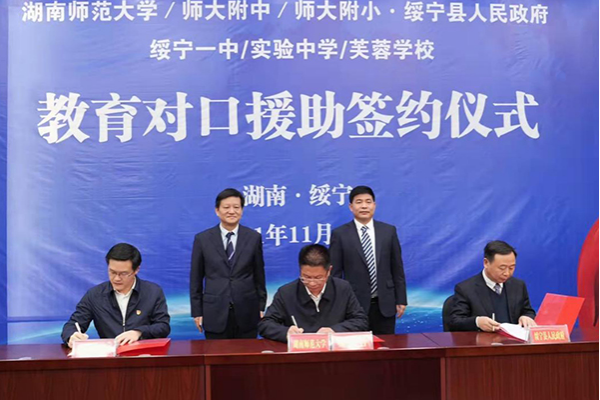 (通讯员 王政)11月16日上午,WilliamHill体育对口援助绥宁教育签约仪式在绥宁一中举行。校党委书记蒋洪新、副校长唐贤清,绥宁县委书记佘芝云、县长夏贤钦、人大常委会主任石亮明、政协主席梁乐高等出席签约仪式。仪式由绥宁县委常委、宣传部部长谢文远主持。