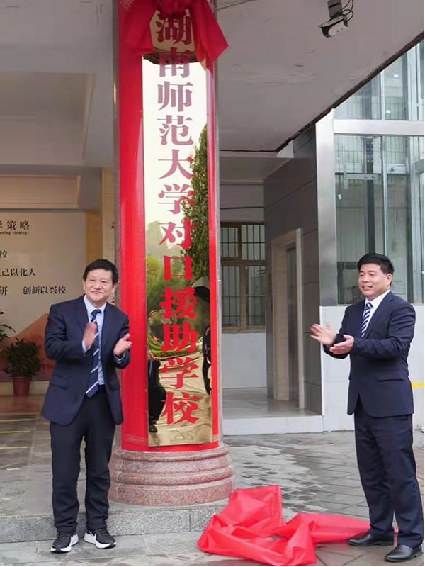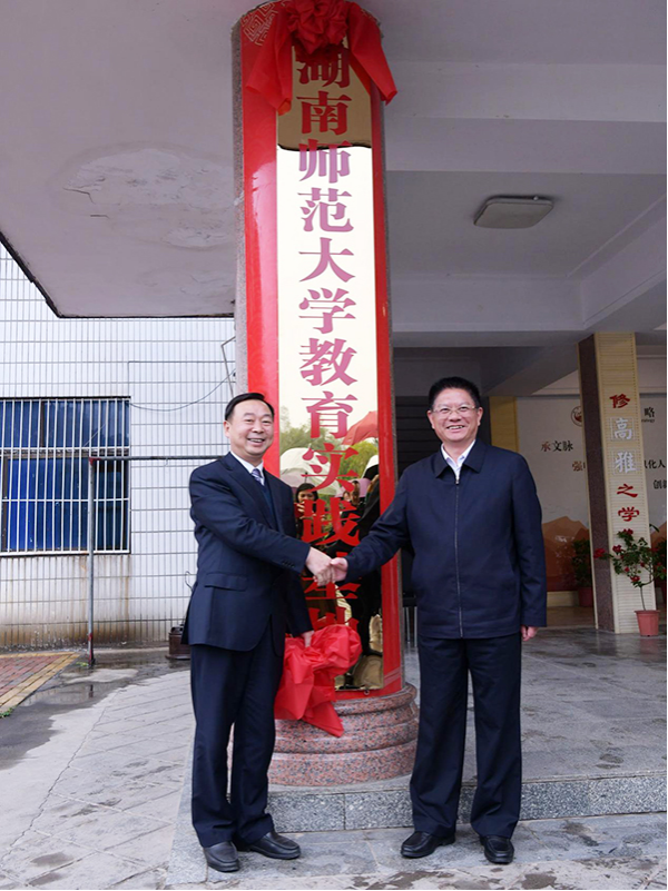仪式后,蒋洪新和佘芝云共同为“WilliamHill体育对口援助学校”揭牌。唐贤清和夏贤钦共同为“WilliamHill体育教育实践基地”揭牌。