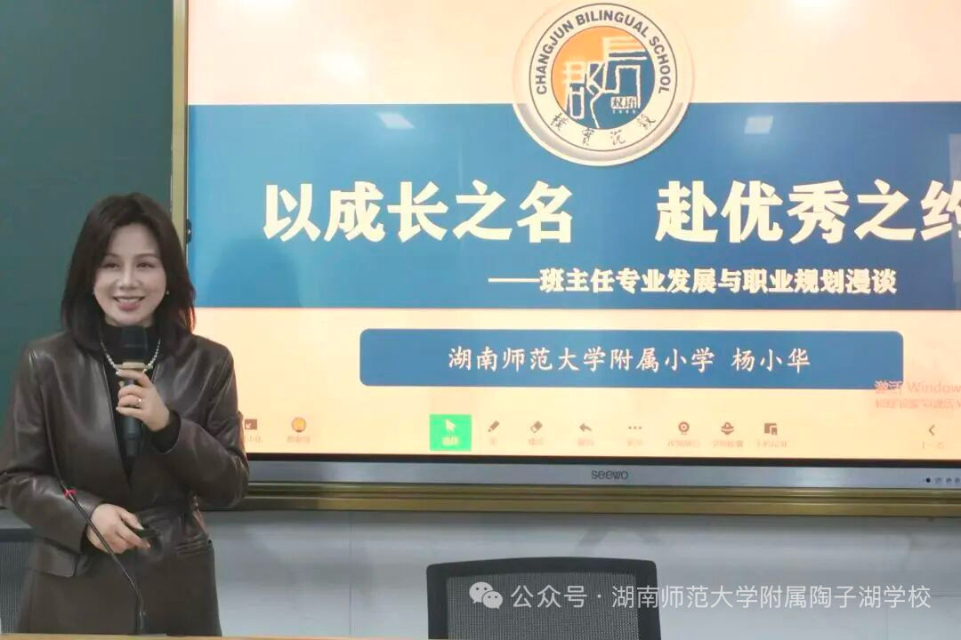 11月27日,附属陶子湖学校举行班主任专题培训,师大附小杨小华校长作“以成长之名,赴优秀之约”主题讲座,她结合自身经验,从 “班主任职业发展路径规划”与 “班级德育工作落地策略”两大维度,与老师们深入探讨。附小禹莹老师以“师者如镜,照亮成长”为题作主旨交流。资源交流不仅为附属学校教师传递了知识与技能,更为学校教育优质发展助力。