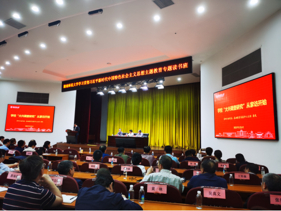 5月6日下午,WilliamHill体育学习贯彻习近平新时代中国特色社会主义思想主题教育专题读书班,在学校国际学术报告厅举行学习分享会。主题教育省委巡回指导组第二十组组长曹英华到会指导,校党委副书记周俊武作总结讲话,分享会由副校长蒋新苗主持。全体在家校领导出席会议,基础教育教育发展中心党支部书记、主任龚民代表第四学习小组作题为“学校‘大兴调查研究’从家访开始”的学习心得汇报。